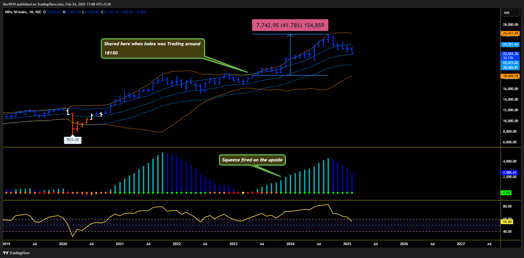 Back in May 2023, I had shared the Nifty Monthly Chart on Telegram, highlighting a Monthly Squeeze in progress.